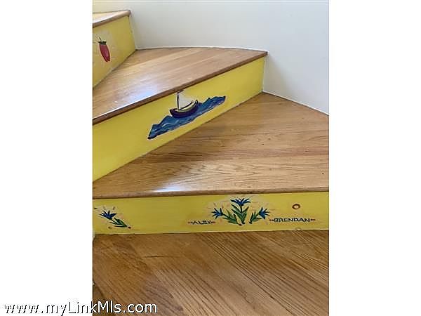 The Silo Staircase has hardwood treads in the kitchen brings you to the 2nd floor. 2 more bedrooms & 1 full bathroom off hallway. The 2nd floor master bedroom has built in dresser and private deck w/ outdoor shower and a spiral staircase going down to main deck. The yard has a brick patio with a path that winds around both sides of the house, a stone retaining wall in the side yard. The nicely landscaped lot with mature plantings abuts woodlands offering privacy.