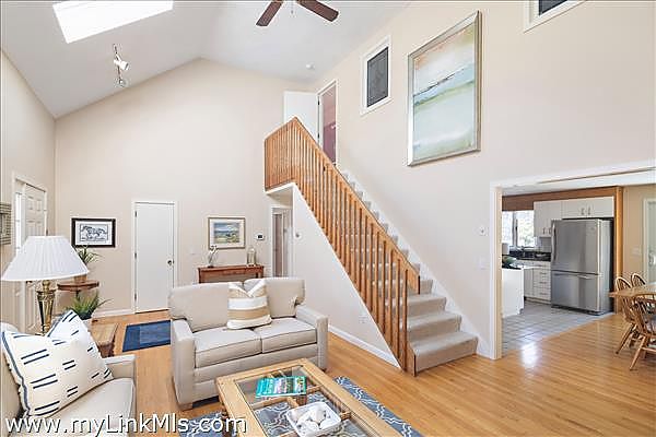 Nestled in the prestigious Majors Cove community, this lovingly maintained home offers the perfect blend of comfort, style, and Vineyard charm. Enjoy access to exceptional amenities, including tennis courts, a boat launch ideal for kayaking to State Beach, and proximity to the bike path for easy access to Edgartown, Oak Bluffs, and Vineyard Haven. Set on a pleasantly landscaped lot, this inviting home is filled with natural light. The heart of the home is the cathedral-ceiling living room, centered around a classic wood-burning fireplace ~ an inviting space for gatherings year-round. The open kitchen and dining area seamlessly connect to a spacious new deck, offering an ideal setting for outdoor entertaining or quiet relaxation. A convenient mudroom with laundry sits just off the dining area and provides direct access to the attached garage. Two comfortable bedrooms and a full bathroom complete the main level. The upper level is devoted entirely to the private primary suite. This serene retreat features a generous bedroom, a dressing area, a walk-in closet, and a full bath complete with a soaking tub and separate shower. Additional highlights include a full basement and the quintessential Vineyard outdoor shower. Offered furnished, this property is your opportunity to enjoy the very best of Island life.