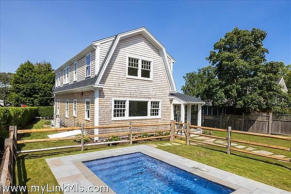 This beautifully renovated gambrel-style home in Vineyard Haven seamlessly blends classic charm with modern luxury. This pristine residence is nestled within a private, hedge-lined yard in one of Vineyard Haven’s most quiet and quaint neighborhoods. With the new heated salt-water pool, outdoor shower, lovely plantings, and beautiful gardens, no detail has been overlooked. The property also features a renovated garage with an unfinished second level, perfect for a creative studio. Inside, the home exudes warmth and elegance, with wide pine flooring, custom craftsmanship, and intricate wood detailing on the ceilings. The spacious living room, centered around a gas fireplace, is both inviting and stylish. The sunlit kitchen, equipped with top-of-the-line appliances and refined finishes, includes a cozy window seat that adds to its charm. The primary bedroom suite offers a serene retreat, complete with a private tile bath and access to a 2nd-floor deck. The three additional bedrooms are equally comfortable and well-appointed, providing ample space for guests. The finished lower level expands your living space further, ideal for a home theater, gym, or playroom. Spend your days soaking in this privacy that this tranquil abode provides, or take advantage of its ideal location to access the hustle and bustle of downtown Vineyard Haven where you can enjoy various galleries, shops, and fine dining. This location is also convenient to Owen Park Beach, West Chop and Mink Meadows Golf Club.