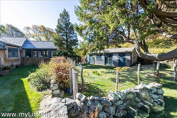 Nestled within Seven Gates Farm, one of Martha's Vineyard's most storied and scenic communities, this 26.5-acre estate offers a beautifully renovated farmhouse that seamlessly blends modern comforts with historic charm. Surrounded by ancient stone walls, mature trees, and lush gardens, the property includes a charming guest house, scenic walking paths, and a peaceful hilltop retreat with a stone bench, offering stunning water views of Vineyard Sound and the Elizabeth Islands. Ideally located just steps from Gray's Beach and dock, this is one of the most picturesque properties in Seven Gates Farm. The Seven Gates Farm community consists of 45 homesites on 1,600 acres with 1,000 acres of protected conservation land, open fields, woodlands, ponds, and miles of trails for walking and horseback riding. Residents of Seven Gates Farm also enjoy exclusive access to 1.5 miles of private beach, two piers, and two tennis courts. This rare opportunity allows you to become part of a remarkable community, once an assembly of farms, that remains dedicated to the preservation and stewardship of the land.