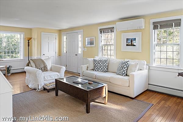 Located in a desirable Oak Bluffs neighborhood, surrounded by mature plantings and attractive colorful landscaping, this property offers a pleasantly appointed 3-bedroom, 2.5-bath home and a recently renovated 1-bedroom, 1-bath apartment above the 2-car garage. The first floor features a spacious living room with a pellet stove and a fabulous great room with a wood-burning stove. French doors lead to a large deck, perfect for outdoor entertaining. The open kitchen and dining room are at the back of the house and enjoy direct deck access. There is a half bath off the living room. The primary suite with a full bath, and 2 additional bedrooms that share a full bath, complete the second floor. An exceptional feature of this property is the apartment with comfortable living space and a private entrance and deck. The location is ideal with easy access to the bike path, YMCA, high school, and state forest, and centrally located to all the down-island towns! Easy to show and being sold mostly furnished, this property is ready for immediate use.