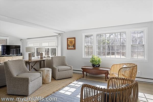 Tucked away in a quiet, wooded setting on picturesque Chappaquiddick, this charming three-bedroom Cape offers a peaceful island retreat. Designed for laid-back living, the home features a cheerful and versatile floor plan with generous indoor and outdoor spaces. The star of the show? A sprawling screened-in porch with a cozy wood-burning fireplace—perfect for summer nights or crisp fall evenings.