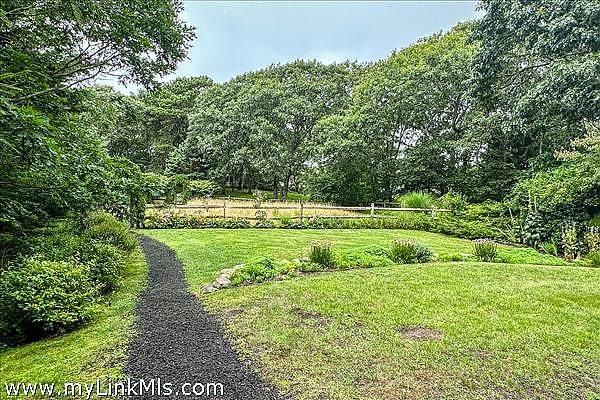 This distinguished Edgartown Great Pond compound presents an exceptional collection of features and amenities. Situated within a highly desirable, secluded enclave on Turkeyland Cove, the 4.8-acre property includes two residences, a bespoke private in-ground swimming pool, approximately 400 feet of waterfront, outstanding water views, and a private beach lot on the Atlantic Ocean. The principal dwelling offers four bedrooms, exquisite craftsmanship throughout, and a unique setting right along the water. The secondary residence was constructed in 2010 and spans 2,556 square feet, featuring two bedrooms, a three-car attached garage, and a full basement. The buildings are harmoniously integrated with meticulously designed plantings, landscape, and custom-built fencing and gates. The pool area provides a secluded oasis, with an L-shaped gunite swimming pool nicely complemented by two adjacent outbuildings. Expansive lawns gently slope towards the waterfront, and boat access to the Atlantic beach is readily available from the property shoreline. Held by the same owner for over three decades, this property represents an unparalleled opportunity.