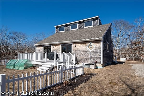 This coastal contemporary residence is located on a private 1.60-acre lot in WestTisbury, with convenient access to Long Point Wildlife Refuge. The home features four bedrooms and two full bathrooms. On the first floor, you'll find two bright bedrooms, a modernized bathroom, and sliders from the living area that lead to a new AZEK deck and enclosed fenced gardens, perfect for outdoor enjoyment. The open floor plan includes attractive beadboard ceilings that create a sense of space and light. Recent upgrades feature a remodeled kitchen with a tiled backsplash, granite countertops, and an LG induction stove along with matching stainless-steel appliances. The first-floor bathroom has been fully renovated with a tiled shower and glass door, tiled floor, new toilet, vanity/mirror, rainfall showerhead and all new hardware. Additional updates include a newer roof, Azek window trim, an outdoor shower enclosure, and gutters with leaf guards. The basement has a 9-foot ceiling with four windows, providing potential for further finishing with town approval. Other improvements include updated plumbing and electrical systems, a new well pressure tank, new Culligan Water Filtration and Conditioning system, and a Generac whole-house generator installed in 2022. Partially furnished and with additional updates available in the documents, this property is well cared for and ready for new owners. Potential to be a STRONG RENTAL PROPERTY. Title 5 Inspection Report in documents.