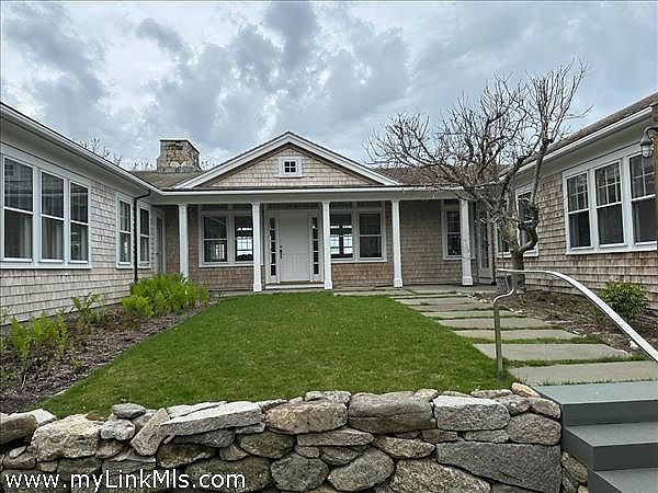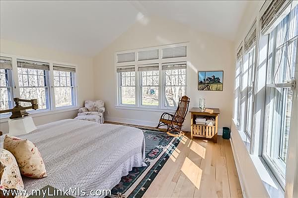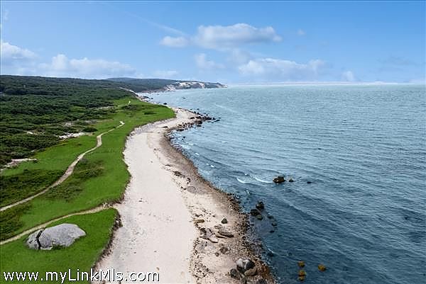 Wonderful elevated Chilmark north shore 3.8 acre secure waterfront property with dramatic year round sunset water views to the Gay Head Lighthouse and Elizabeth Islands. The Vineyard Sound expanse enjoys peaceful sailing, fishing and other boating activity to enhance the ocean splendor. The 5 bedroom 3 1/2 bath 4,050 sq ft home is literally in move-in condition. Architect designed and built by Heikki Soikkeli, the house is light filled with 140 windows so every room has windows on 3 of the 4 sides. The house has 3 self contained bedroom wings and a stunning Lew French fireplace and chimney. The property sits on a private 48 ft elevated 425 ft setback site in the highly desirable Spring Point community -- 48 homeowners on 330 acres with 90 acres of common land, 2 tennis courts and 5 miles of quiet paths and pretty well maintained country dirt roads -- with the finest north shore bluff path along a 1 mile stunning private sandy beach abutting the dreamy Great Rock Bight Beach Cove next to the 200 acre Menemsha Hills Reservation. The house is a short walk on a grassy canopied path to the beach. The living room, primary bedroom and kitchen have grand water views.