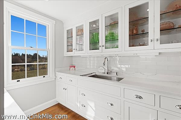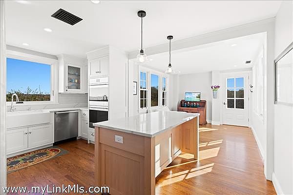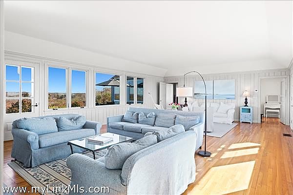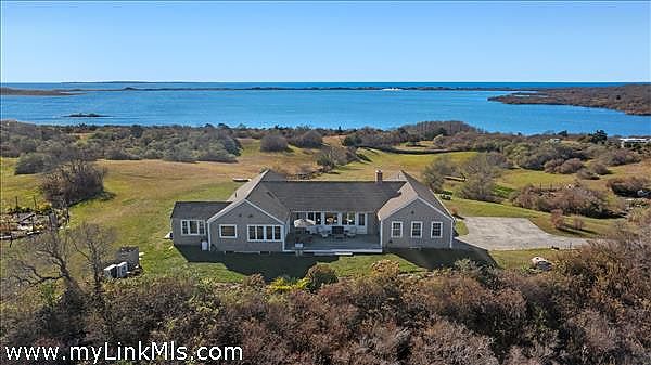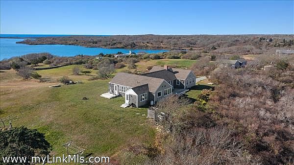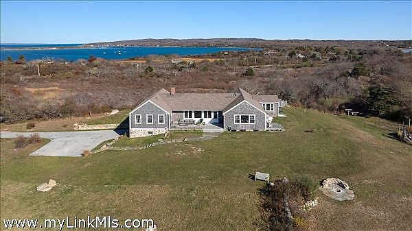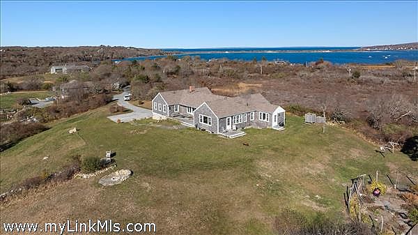 New to market this completely renovated water view home is located in a private enclave of upscale homes fronting on Squibnocket Pond in Chilmark. There are 360 degree views from this 3.6 acre hilltop site offering views of the pond, Atlantic Ocean and north to Menemsha Pond and the Vineyard Sound. Sunrise and Sunset! This home, completely renovated in 2022 features a state of the art gourmet kitchen, adjacent butler's pantry & vast open living area with wood burning fireplace, mellow wood floors and breathtaking views out every window. Four large bedrooms, three bathrooms plus a powder room. Primary suite bathroom features an independent tub and steam shower. Fully heated, insulated and air conditioned this home is four season living. Walking paths to pond access for kayaking, swimming and boating & association tennis court. This property is protected by a Trustees of Reservation Deed of Conservation Easement.