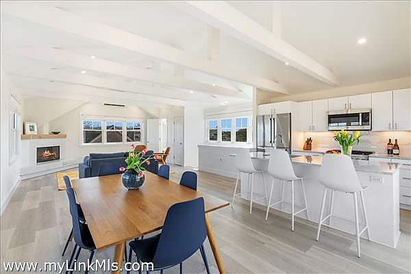 Waterview Condo in the Heart of Downtown Vineyard Haven. Experience the best of in-town living with this newly built, thoughtfully designed 2-bedroom condo offering beautiful harbor views and luxurious modern finishes. The first level welcomes you with a primary suite featuring a full bath with a tub/shower combination and direct access to a private deck complete with an outdoor shower—perfect after a day at the beach. Also on this level is a comfortable guest bedroom with peaks of the harbor, a stylish full tile bath with a glass-enclosed shower, a cozy living area, and washer/dryer for convenience. Upstairs, cathedral ceilings and a gas fireplace create an inviting open-concept living space. The gourmet kitchen is outfitted with sleek Bosch appliances, a large center island ideal for entertaining, and an adjoining dining area. Enjoy panoramic water views of the harbor, passing ferry boats, and Vineyard Sound from the entire second floor, or step out onto your private deck—perfect for alfresco dining or morning coffee. Just steps from your door, a private path leads to the association’s sandy harbor beach, where you can store your kayak or launch your boat. This condo also includes a dedicated parking space and an enclosed storage area under the house—ideal for bikes, beach gear, or seasonal items. With easy access to downtown shops, restaurants, ferry terminal, and local beaches, this condo offers the ultimate combination of luxury, convenience, and island charm. A rare opportunity for carefree coastal living on Martha’s Vineyard.