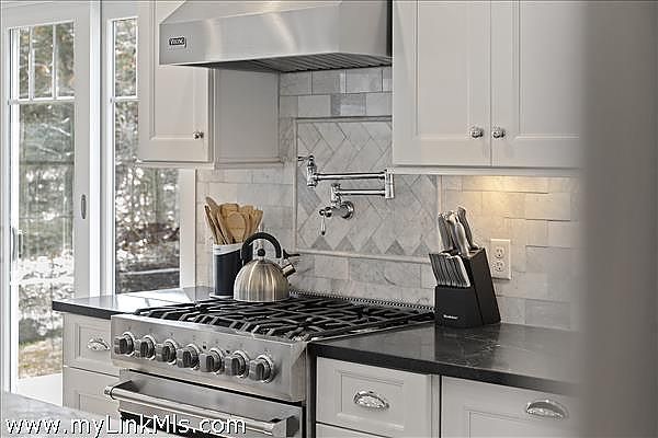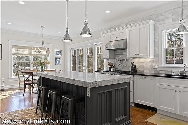 Experience the ultimate Vineyard getaway in this custom Colonial that perfectly balances sophistication with Island charm. This thoughtfully designed property features soaring 9-foot ceilings, authentic Heart Pine flooring, and a show-stopping gourmet kitchen complete with professional-grade Viking appliances, handcrafted soapstone countertops, and a statement Carrara marble island. The spacious floor plan offers four bedrooms and four full bathrooms, complemented by two powder rooms and a fully finished lower level for additional entertainment. Separate guest quarters above the garage provide visitors with their own private retreat, featuring a dedicated living room, convenient wet bar, and private deck. Outdoors, a mahogany deck overlooks beautifully landscaped gardens, with an outdoor shower perfect for post-beach rinses before alfresco dining under the stars. Conveniently located just a short distance from downtown Edgartown's acclaimed restaurants, boutiques, and harbor, this property offers a quintessential Vineyard experience and an established rental history.