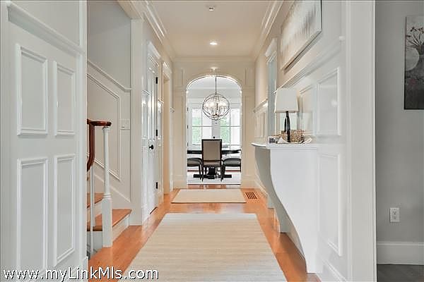 This stately Greek Revival home lies on beautiful Fuller Street and a short walk to the beach. This 5-bedroom / 5.5-bath home features a beautiful foyer with arches and paneling leading past a grand staircase to a beautiful family room, kitchen and screened porch overlooking the backyard. There is an ensuite ground first floor bedroom and office off the hall as well as a side mudroom entry and interior access to the one-car garage. The second-floor features three bedrooms, two of which share a bath, laundry room in addition to a large primary bedroom with fireplace, luxurious bath and walk in closet. The 3rd floor offers a large room with water views that could be used for a number of purposes, with a full bath. The lower level offers a TV sitting room, large gym with wet bar, a second laundry room and door to exterior pool area. The rear yard offers a built in grill, swimming pool and pool house complimenting the nicely landscaped grounds, 2-car brick parking area and all located just a short walk to Fuller Street beach, the harbor and downtown.