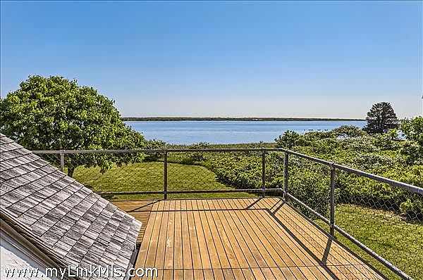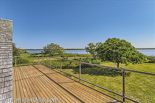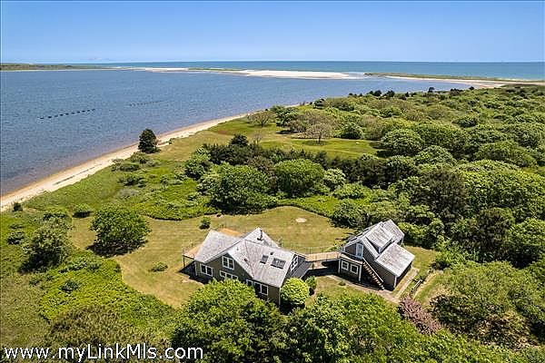 Nestled along the beautiful and tranquil shoreline of Tisbury Great Pond and surrounded by a stunning natural environment of water, sand and sky, this is an unparallelled beach house experience on the south shore of Chilmark. The five-bedroom home consists of a three-bedroom main house connected by walkways to a two-bedroom guest wing with studio space above, all with spectacular water views including from ground floor. The yard surrounding the house is a meadow like setting with an easy grassy path out to the sandy pond shoreline. Play on the pond with paddleboards, kayaks, small motor boats and sailboats, and quickly cross over to the ocean beach. Although little ones love to stay on the pond shoreline at the house to explore and swim in these safe calm waters. The existing buildings and six-bedroom septic await your vision. Abutting conservation land on two sides. Access to Chilmark beaches as well. This is a rare offering with the combination of water frontage on the pond, proximity to the ocean, conforming acreage and panoramic views. Create your own private sanctuary for your family in this wild and beautiful, natural setting.
