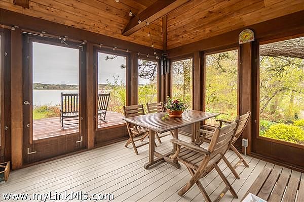 Spectacular waterfront home with stunning water views from every room. Situated in a private location in the Sengekontacket Association, this is an exceptional property in a rare setting. Completely renovated in 2014. In addition to the breathtaking water view of Major's Cove and of Felix Neck throughout the home, the front of the property faces serene pastoral views. This home offers four bedrooms with a main floor master and ensuite, exquisite craftmanship throughout and a unique setting on the water. Great care was taken in the planning of this home to ensure maximum enjoyment of the tranquil surroundings and views. Each of three bedrooms on the second floor has a water view. The quality of materials used in the construction of this home is outstanding. As you walk through the property, the landscaping and gardens are impeccable, and have been featured in MV Magazine. The back yard gently slopes down to the water. Carefully planned by the owners, this home was constructed to follow net zero design principles which provide an energy-efficient retreat. Lovingly maintained by the owners, this property is a true one of a kind sanctuary on the Vineyard.