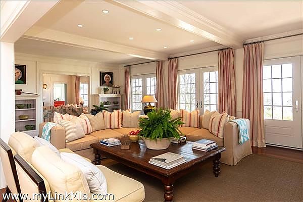 The combined screened and covered porch, which extends nearly the full length of the home and overlooks Katama Bay, is a defining feature of the property, providing ample space for al fresco summer meals, reading, playing games, or simply soaking in the brilliant evening sunsets.