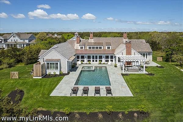 LUXE COASTAL RETREAT IN KATAMA. Sited at the end of a long private drive, amid a bucolic 1.5-acre meadow setting and lush perennial gardens, this elegant coastal retreat, designed by noted architect Patrick Ahearn, offers the epitome of luxurious living in Katama. The home’s timeless and charming character is highlighted by thoughtful, top-notch architectural details and styling throughout. There are vaulted ceilings in every room of the house with custom millwork and paneling, antique rough hewn beams adding charm and character. In addition, the well-designed floor plan features multiple living areas that open out to a central courtyard with bluestone terrace, an outdoor wood-burning fireplace and an 18'x36' gunite swimming pool with built-in whirlpool spa. The property is ideally located near South Beach, with the sounds of the ocean nearby. Furnishings, artwork and accessories are available separately for a turnkey and move-in ready purchase opportunity.