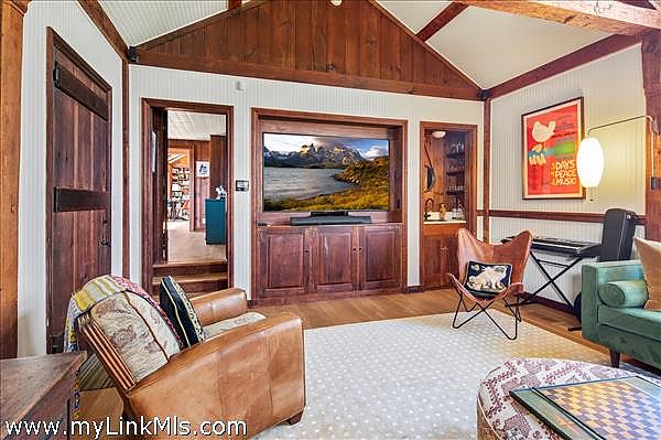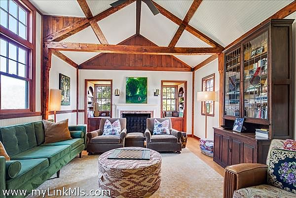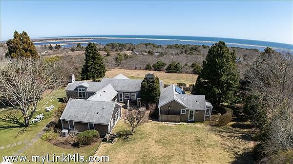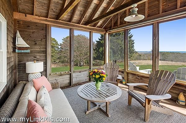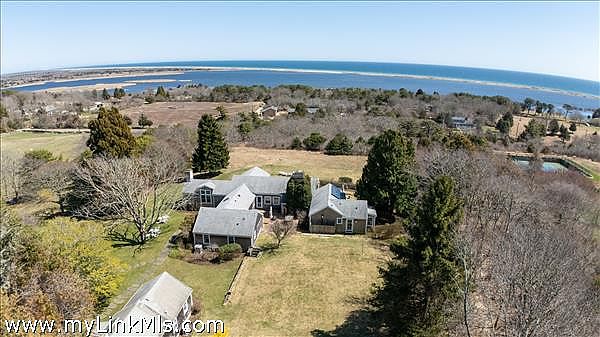 A 1930s-built home that has been remarkably updated to retain its historic charm while incorporating sophisticated and modern amenities. The house overlooks the Chilmark Great Pond and the Atlantic Ocean beyond. The Main House includes 3 bedrooms, 3 beautifully renovated bathrooms, a walk-in closet, a Pantry, a Library/Media room, a full basement, Outdoor showers, and a screened-in porch. The property includes a 2-bedroom Guest house, a Garage with a bedroom & bathroom above, a studio, and landscaped gardens. The property has had a pool designed, and there is walking access to the Chilmark Great Pond from the house.