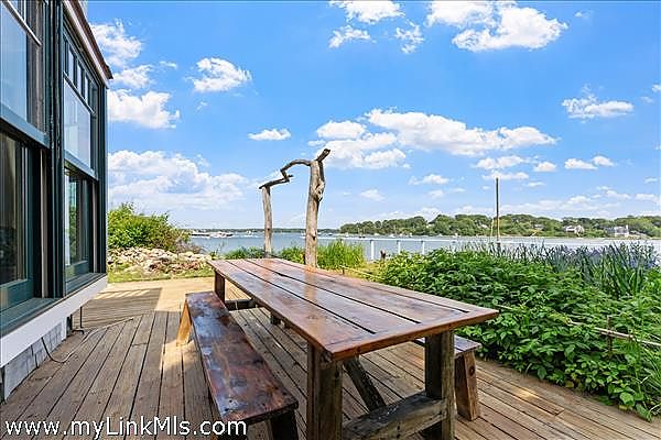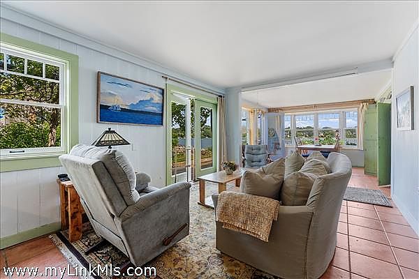 Unique, waterfront property with amazing, 180 degree views of the lagoon from one side of the property, and the Vineyard Haven Harbor on the north side of the property. Zoned both residential and commercial, rarely does such a unique property become available. Elevated above Beach Road and the lagoon, there are 2 structures on the property. The first, sited on the lagoon with private access, is a year-round home with breathtaking, expansive sunrise views up and across the lagoon. This building has 4 bedrooms, two on the first floor and two on the second floor, 2 baths, one on each level, and 2 living areas. The upper level has a spacious deck overlooking the gardens and expansive views of the lagoon. The waterside patio has beautiful perennial gardens. There are many creative details throughout. Use the property as it is or take advantage of the work the sellers have completed to turn it into 3 condos: 2 residential condos and one commercial condo. The commercial building is currently used as an artist’s studio. Work needs to be done to meet building code regulations for a commercial operation. Property is connected to the town sewer and town water.