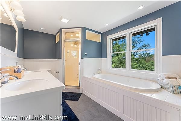 enjoy walks through peaceful west chop woods or take your golf cart to Mink Meadows public golf course. The VTA bus stop at the end of the road provides easy Vineyard access. A rare blend of refined comfort and location! *all waterford crystal lighting excluded from sale. Very easy to show!