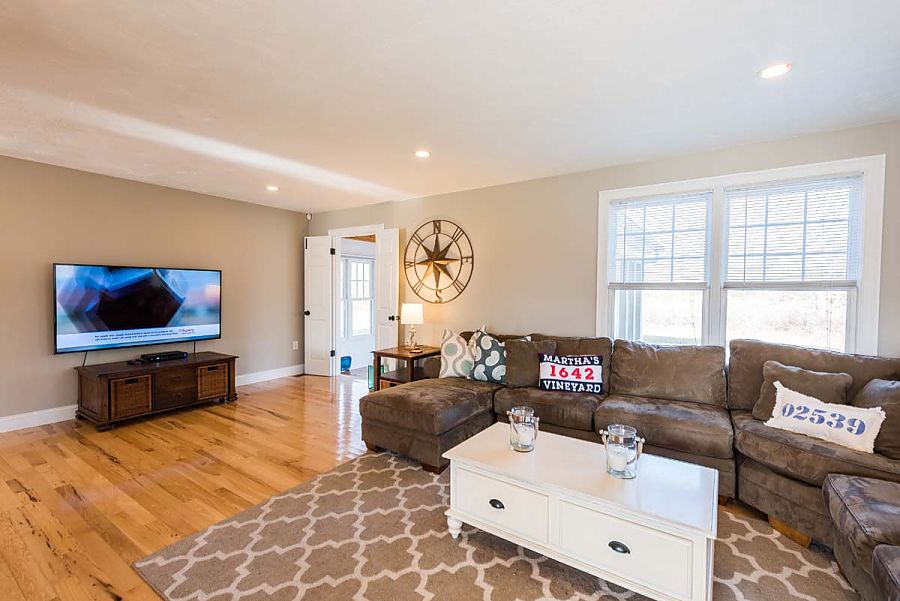 A great vacation begins with a great vacation home. This spacious home set on a private, large landscaped lot is sure to please. The summer wrap around porch is the perfect place for relaxing and enjoying the summer weather.  Nicely located, this home is but a short drive to all three down island towns and to multiple family beaches. Bike paths are located just a short distance from the house at the entrance  to Dodger’s Hole area.