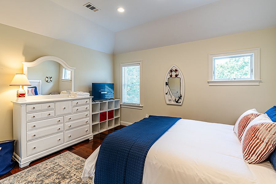 Guest Primary Bedroom 2nd Level, Queen, TV. bath with walk-in glass shower