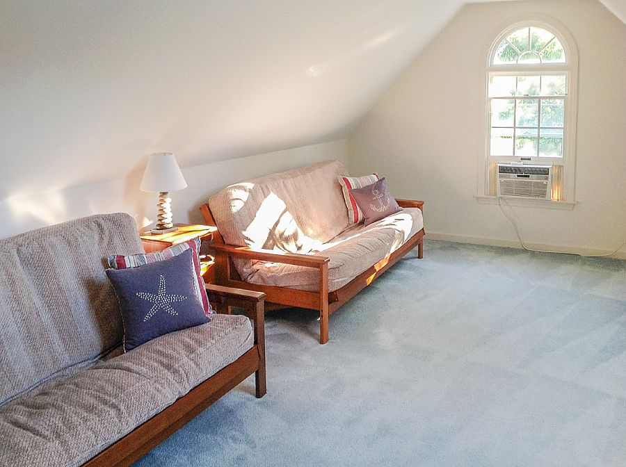 Bedroom 5: Pool House Suite: Queen Sleep Sofa, Window A/C, bath (shower only)Additional sleep space is found on the 3rd level, one room has two double futons with window AC and on the opposite side of the landing is a small room with two singles, no AC, fan.