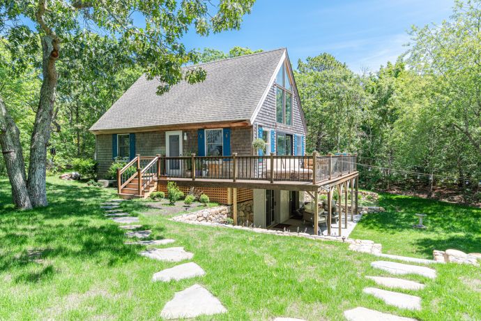 Experience the essence of modern living in an exquisite New England home boasting classic design, nestled on meticulously landscaped grounds just moments away from South Beach and Edgartown Village.
